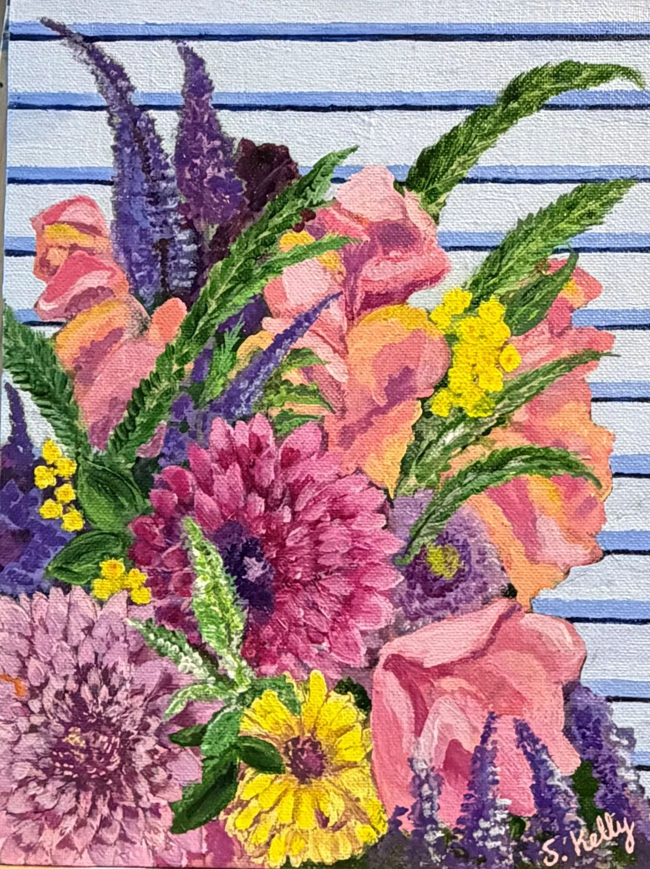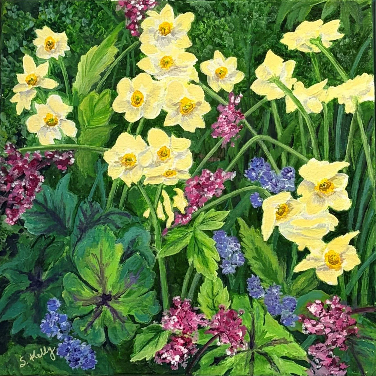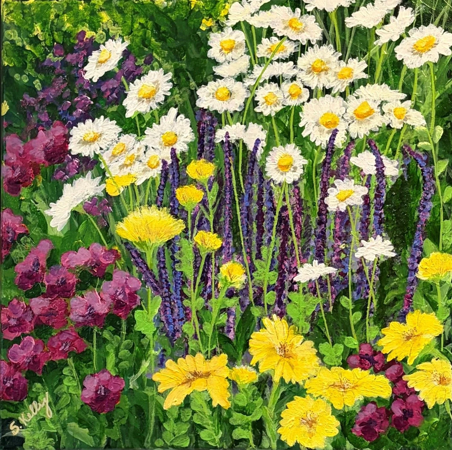 A painting collection built around lush, colorful floral subject matter that radiates energy and abundance. Each piece bursts with layered petals, saturated hues, and organic movement, creating a sense of gardens caught at their most vibrant moment.