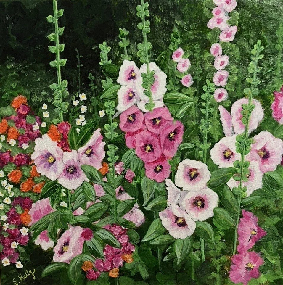 “Hollyhocks at Night”